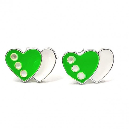 Yeşil Mineli Çift Kalp Model 925 Ayar Kız Çocuk Çivili Gümüş Küpe